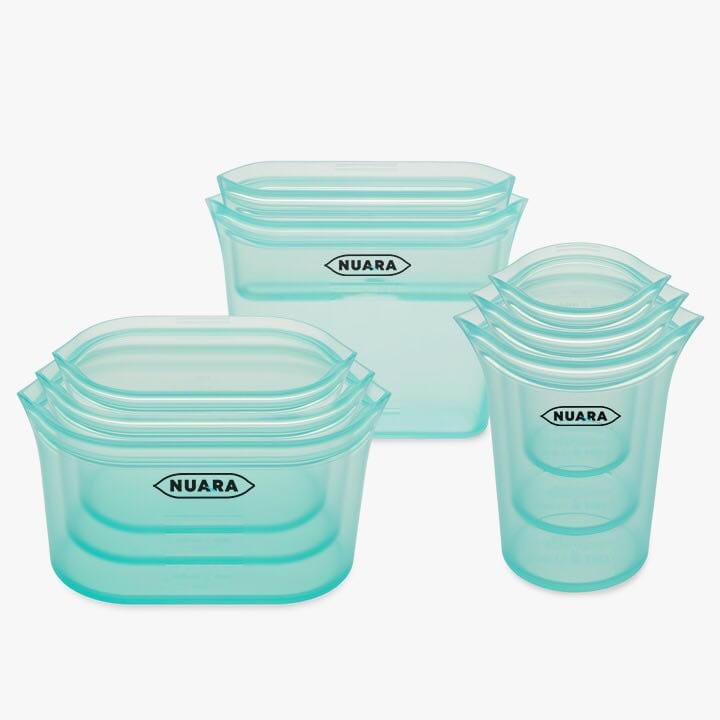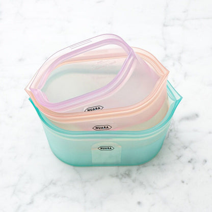 Crafted from 100% food-grade platinum silicone, Nuara containers are toxin-free and built to last. The self-standing design stays open for easy, hands-free filling while the airtight, leak-proof zip seal preserves freshness. Durable, microwave-, freezer-, and dishwasher-safe, these reusable pouches replace thousands of single-use bags.
