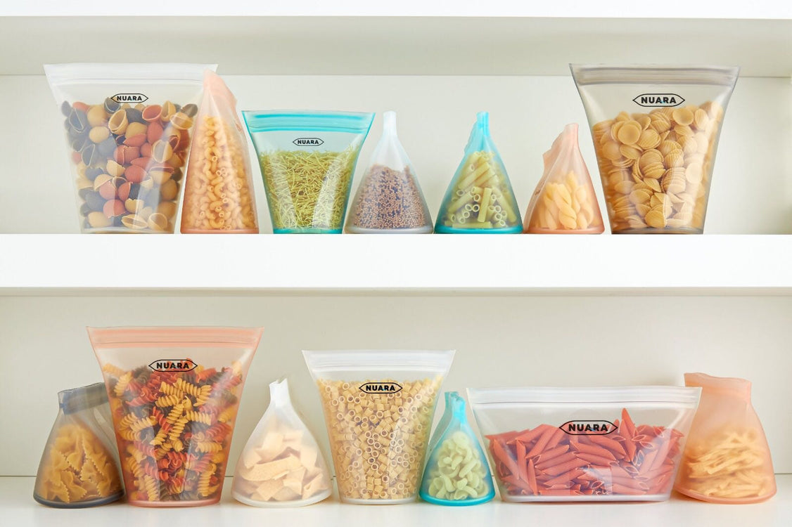 Nuara comes in multiple sizes: cups, bags, and dishes to suit everything from snacks to full meals.